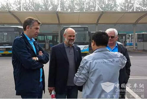UITP主席Sergei KOROLKOV(左二)在小营公交场站聆听微宏工作人员进行讲解