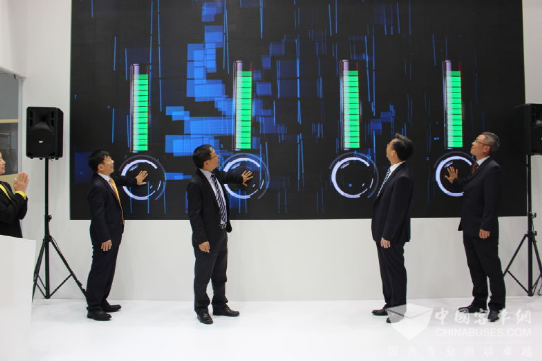 现场还展示了另一款超级电容储能式电动汽车,车身18米长,搭载超级电容作为储能系统,通过大电流快速充放电,利用乘客上下车的30秒时间完成一次充电动作,满足约5公里的续驶里程。