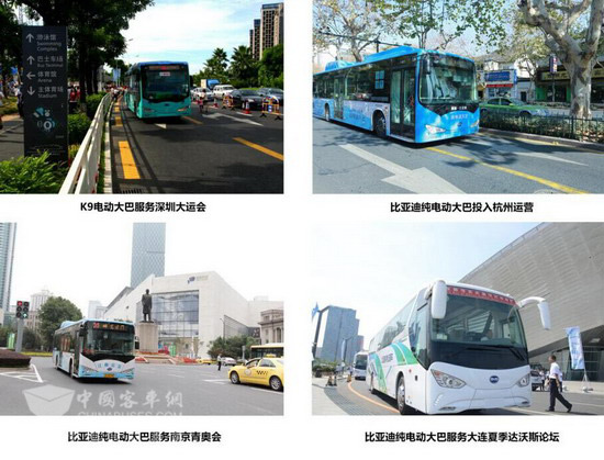 多年来,比亚迪一直是全球绿色公交的开拓者。2010年11月,比亚迪在全球首次提出公共交通电动化解决方案,通过“纯电动大巴+纯电动出租车”的组合,来代替传统燃油公交车和出租车,率先在公共交通领域实现电动化。在全国各大重要会议上,都可以见到比亚迪声影:2011年深圳世界大学生运动会、2014年南京青奥会、2015年大连夏季达沃斯论坛… 比亚迪纯电动客车也成为了流动的“绿色”名片。