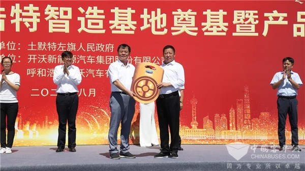 呼和浩特市委副书记、市长、和林格尔新区党工委书记张佰成,呼和浩特市委常委、宣传部长张金萍,呼和浩特市副市长毕国臣,土默特左旗党委书记成红亮,党委副书记、旗长李浩书等政府领导,以及开沃汽车集团董事长黄宏生、副董事长丁星胜等开沃汽车集团高层,客户、媒体代表等200余人参加了奠基仪式。