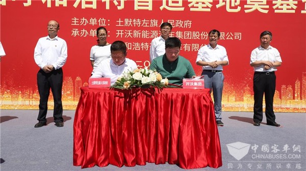 仪式期间,黄宏生代表开沃汽车集团向土默特左旗政府代表—党委副书记、旗长李浩书赠送了4辆开沃“创业者”新能源执法车辆,以帮助当地进一步加强执法力量,助力环境友好型城市建设。此外本次仪式上土默特左旗政府还同开沃汽车集团签订了城市环卫车批量采购协议,用以替换传统燃油车辆。