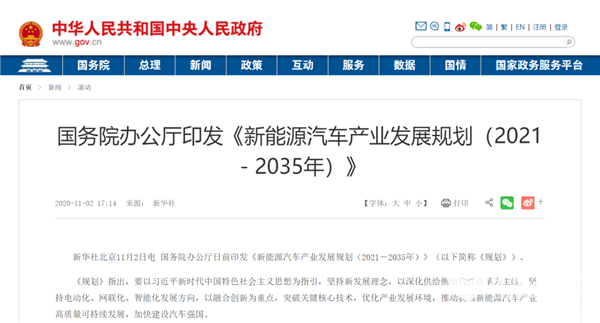 据江南网页版报道,2020年11月2日,国务院办公厅正式印发《新能源汽车产业发展规划(2021—2035年)》(以下简称规划),明确了未来15年间我国汽车产业的发展规划与目标。